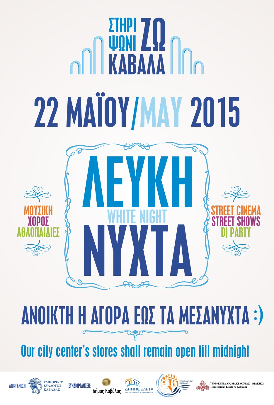 ΛΕΥΚΗ ΝΥΧΤΑ ΚΑΒΑΛΑ 2015 με ανοιχτή την αγορά ως τα μεσάνοιχτα, αθλητικά δρώμενα, μουσικοχορευτικές εκδηλώσεις, σκακιστικοί αγώνες, street cinema & street shows για μικρούς και μεγάλους !!!