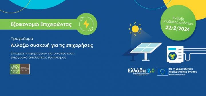 Το πρόγραμμα υλοποιείται στο πλαίσιο της δράσης «Εξοικονομώ - Επιχειρώντας», με την υποστήριξη του Ταμείου Ανάκαμψης και Ανθεκτικότητας.