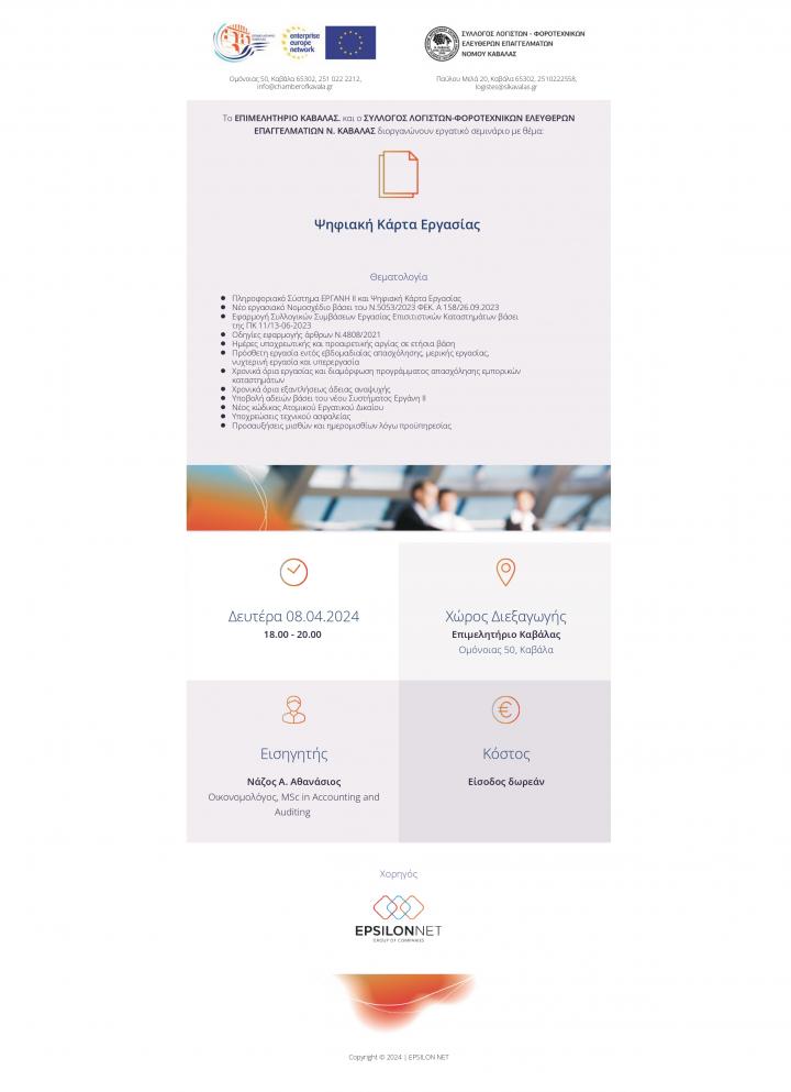 Πρόσκληση σε ενημερωτική ημερίδα με θέμα τη Ψηφιακή Κάρτα Εργασίας