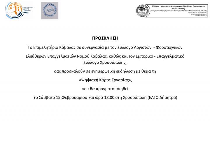 Διοργάνωση σεμιναρίου με θέμα τη ψηφιακή κάρτα εργασίας